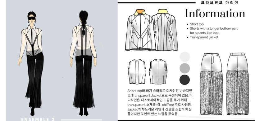 본 교과목은 디지털 패션 디자인 도구(CLO 3D)를 활용하여 창의적이고 다양한 패션 디자인 아이디어를 조형적으로 표현하는 것을 목표로 한다. 학생들은 협업을 바탕으로 디자인 아이디어를 공유하고 테마를 선정해 하나의 컬렉션을 완성할 수 있다. 의상이 만들어지는 과정을 CLO3D의 가상 의상 샘플 제작 과정을 통해 이해하고 개인마다 두 벌의 디자인을 선정해 패턴 개발 및 3D 프로토타입을 제작하는 것을 목표로 한다. 최종 발표에서는 팀이 함께 구성한 컨셉과 이미지맵, 컬러맵 등을 바탕으로, 모든 구성원의 디자인이 포함된 패션쇼 영상을 제작하여 발표한다.